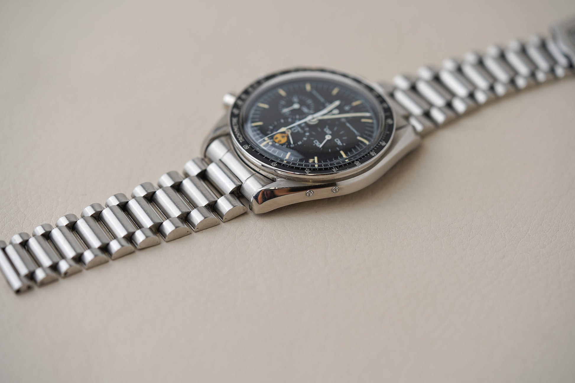 Surely if any chronograph deserves a moonphase complication, it’s the Moonwatch. But, like all good things, it was only introduced in the 80s. This is the ref. 345.0809, better known by collectors as the Speedymoon. Not only does it bring the most romantic of complications to the party, but it adds a date, cool flanking text at the 6 subdial like an early Saxonia, total vertical symmetry, and a wealth of strange nuances to learn. It was the most complicated Speedmaster that had been made in 1985 and it looks far prettier than the most complicated Speedmaster that’s made today.