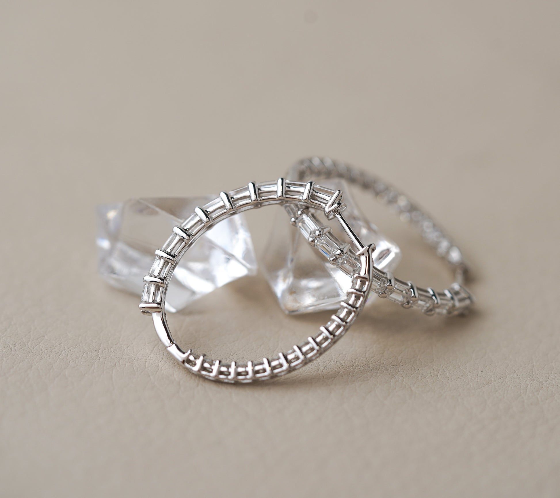 14k White Gold 3.00tcw Lab Grown Round & Emerald Cut Diamond Inside Hoops