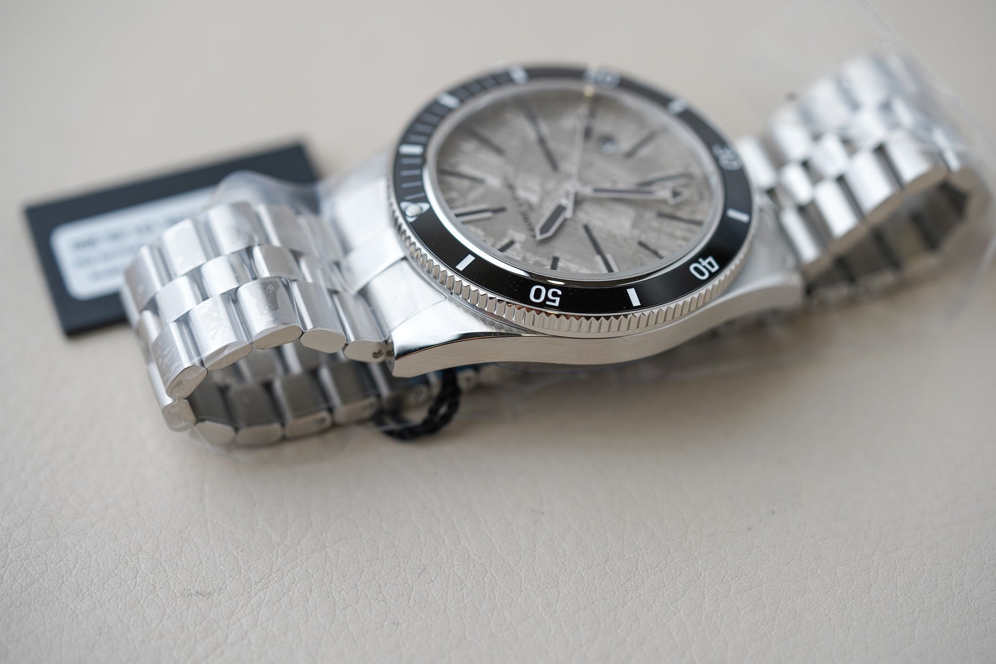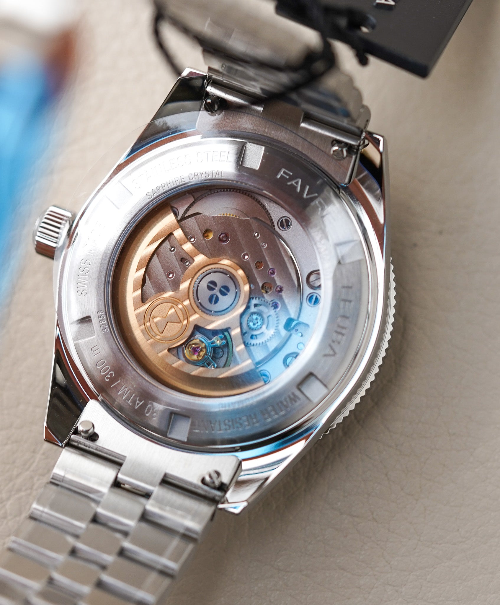 At its heart beats the in-house FLD02 automatic movement, delivering an impressive 68-hour power reserve at 4 Hz. The exhibition sapphire caseback reveals finely finished components—Côtes de Genève on the main plate, a skeletonized rotor with Soleillage finishing, and heat-blued screws—all testifying to Favre Leuba’s dedication to haute horlogerie. The watch comes on a robust steel bracelet with brushed and polished surfaces, featuring an ergonomic quick-change system for effortless swapping to straps when adventure calls.