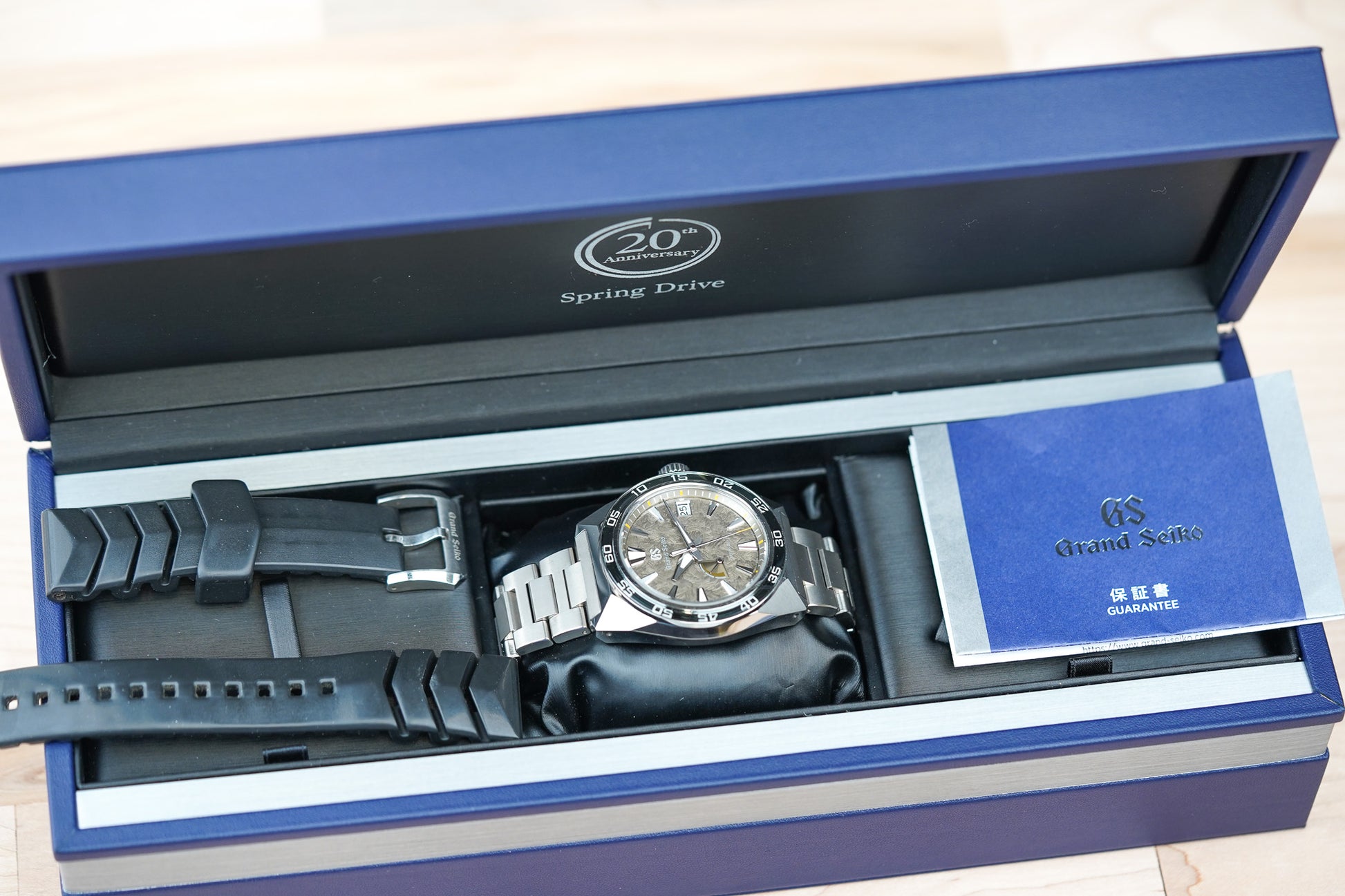 This limited edition commemorates the 20th anniversary of Grand Seiko's original Spring Drive movement, Caliber 9R, which was created in 2004.