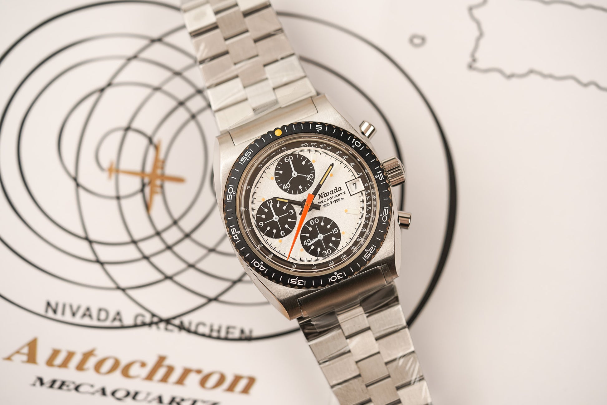 In 1961, Nivada Grenchen launched the Chronomaster, a versatile waterproof chronograph designed for aviators, divers, and sports enthusiasts. The company continued its innovative streak with the release of the Depthomatic in 1964, the first diver's watch featuring a depth indicator, followed by the Depthmaster in 1965, capable of withstanding pressures up to 1,000 meters.