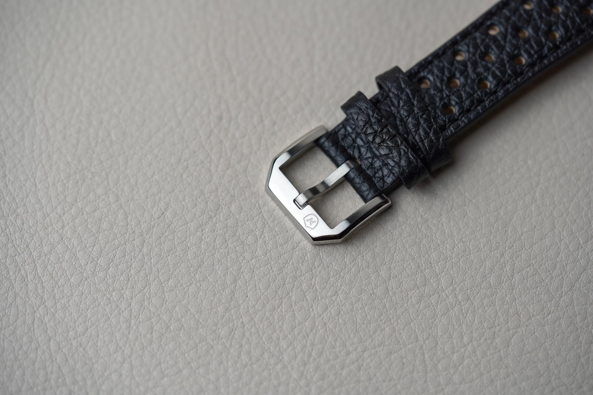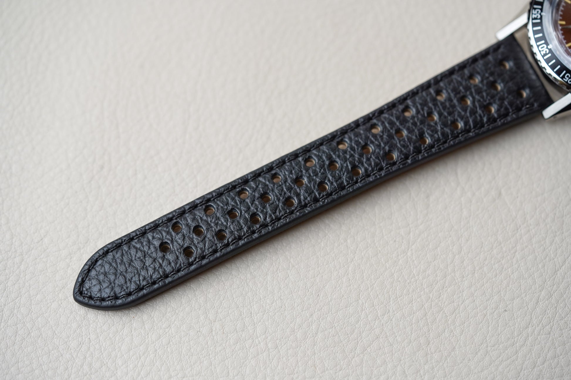 Bracelet: Black Leather Racing Strap