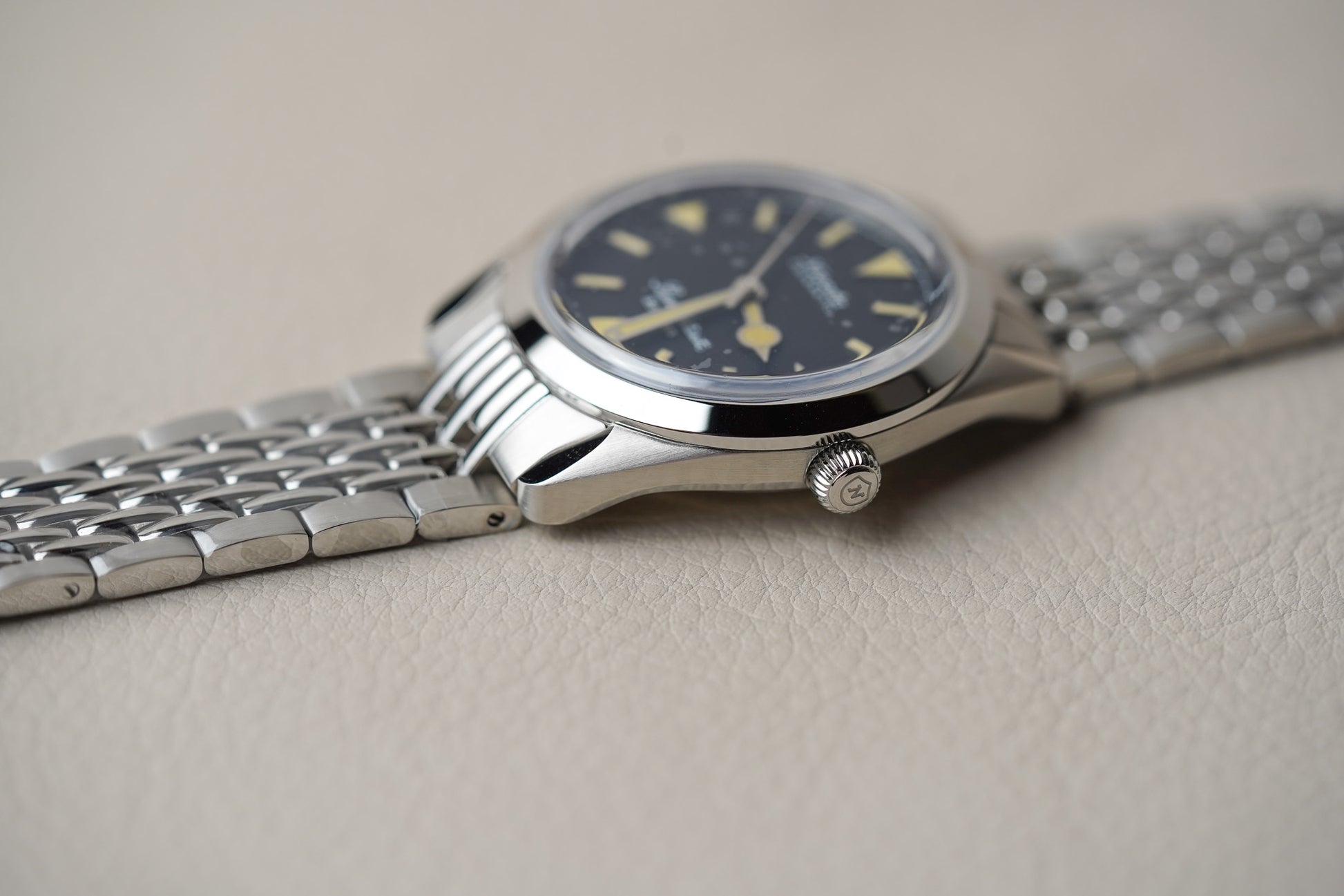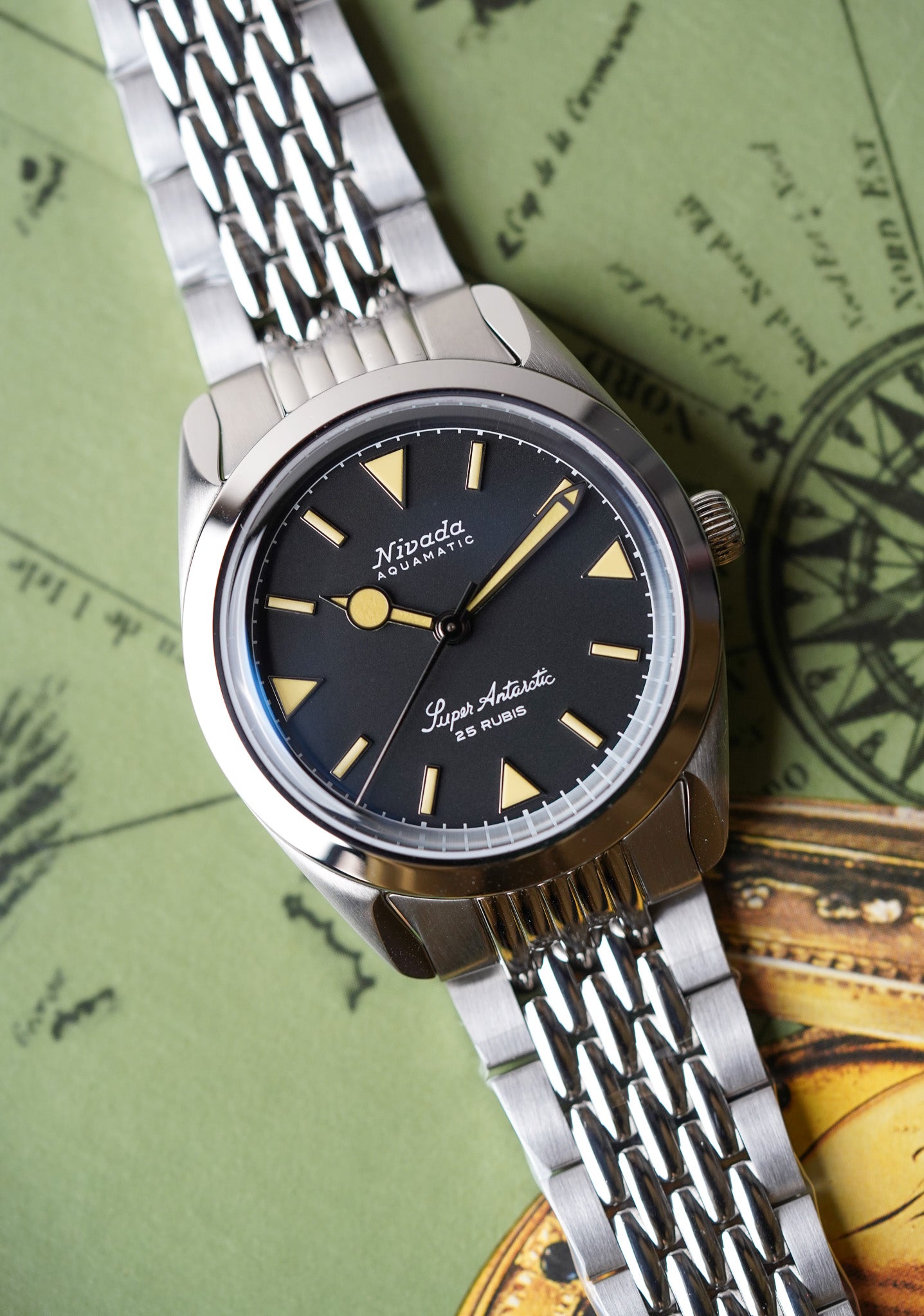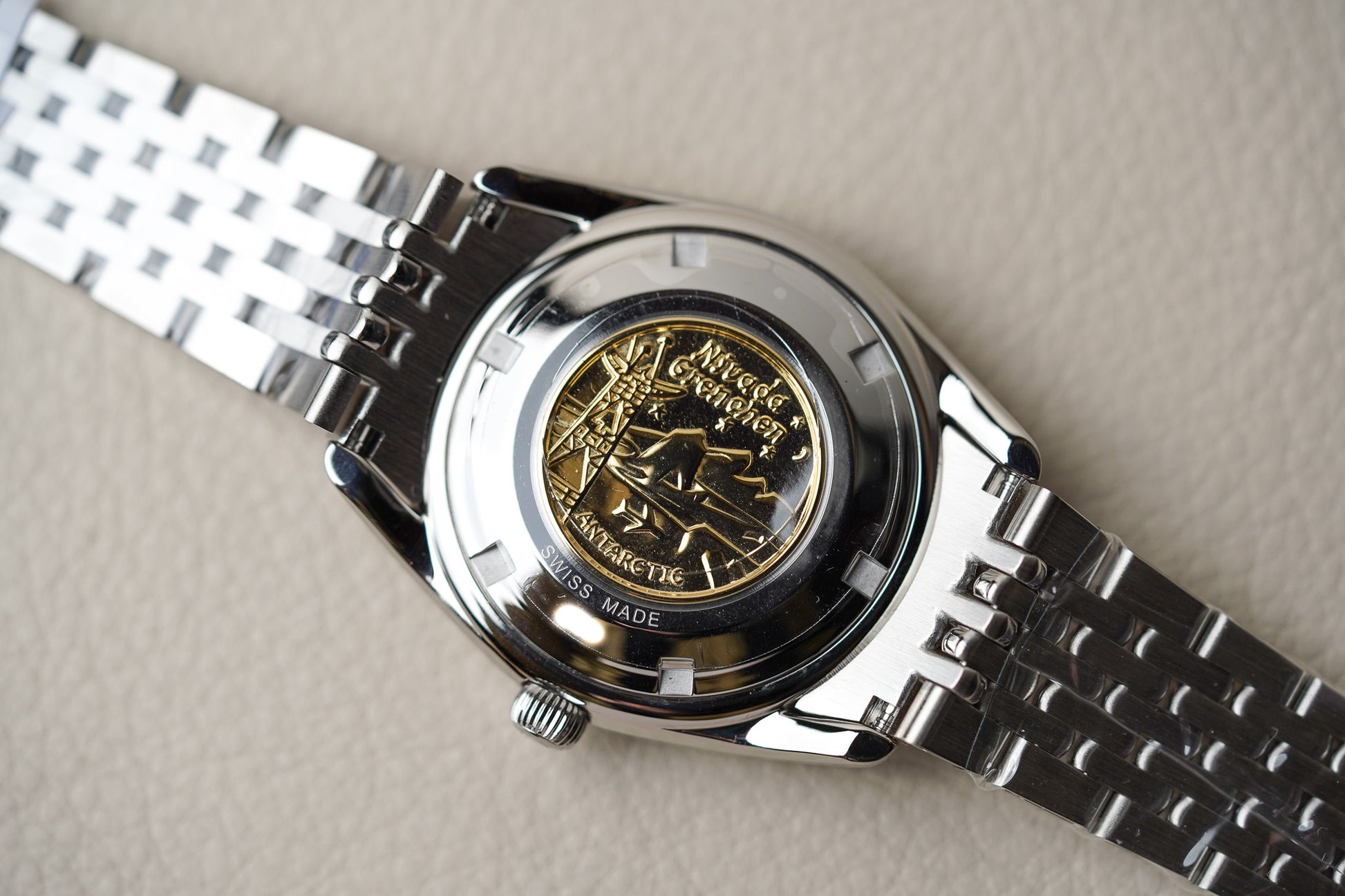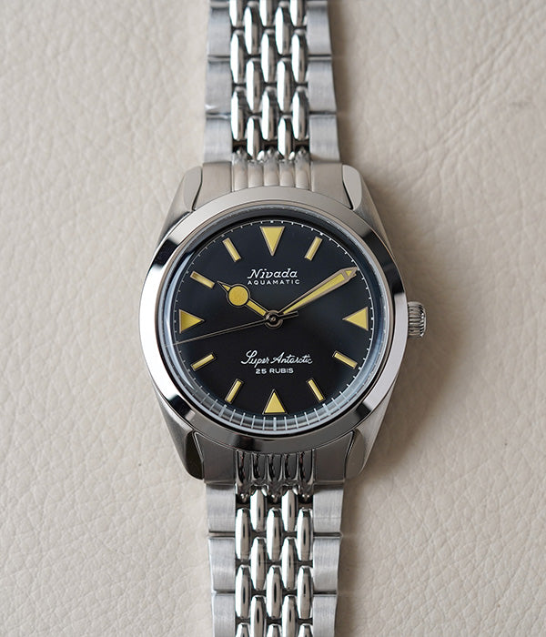 Nivada Grenchen, established in 1926 in Grenchen, Switzerland, quickly became renowned for its rugged tool watches that pushed the boundaries of horological innovation. The brand solidified its reputation with the introduction of the Antarctic in 1950, the first waterproof automatic watch. This timepiece gained fame when it accompanied members of the U.S. Navy's Operation Deep Freeze I during their South Pole expedition from 1955 to 1956.