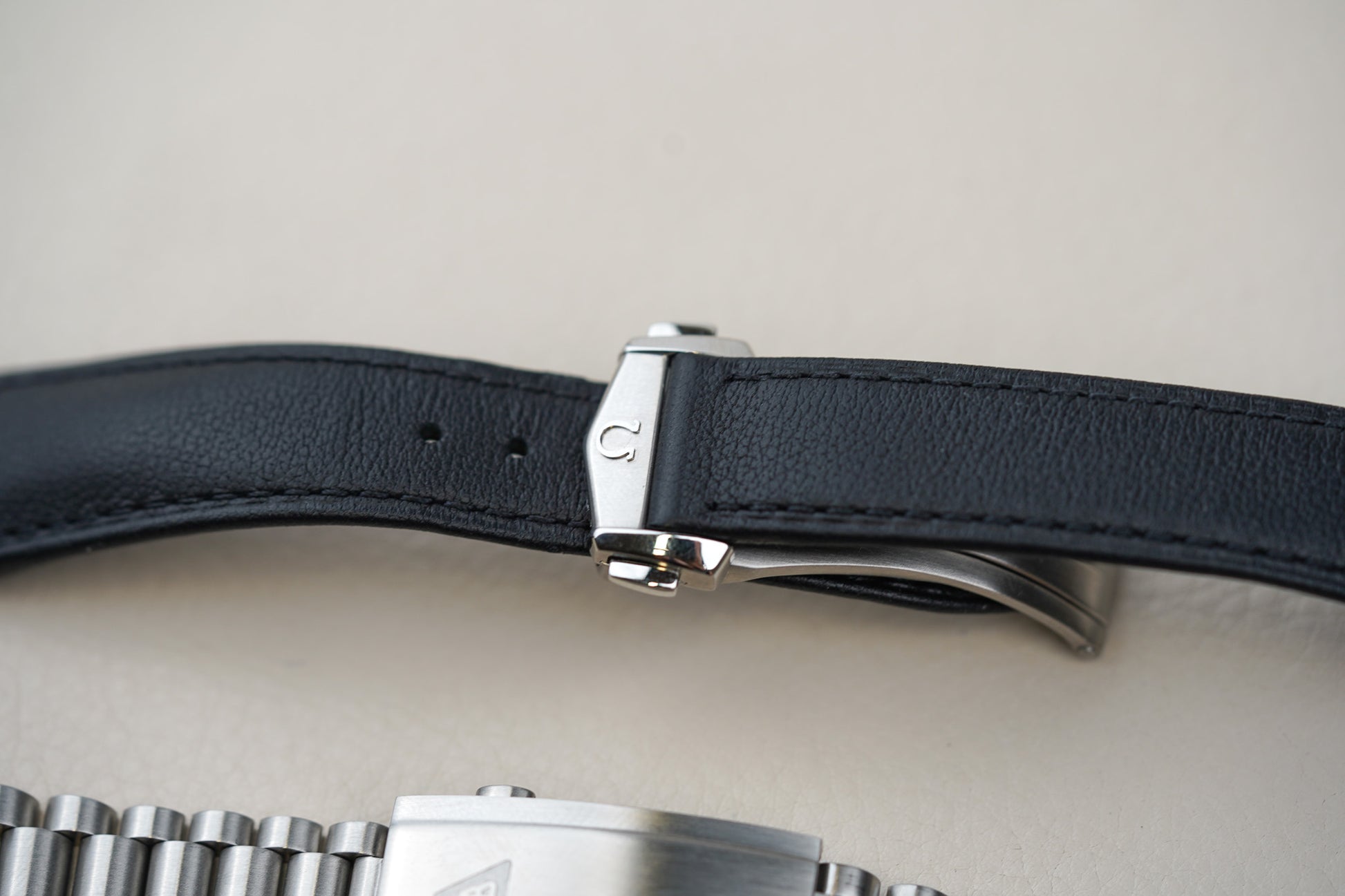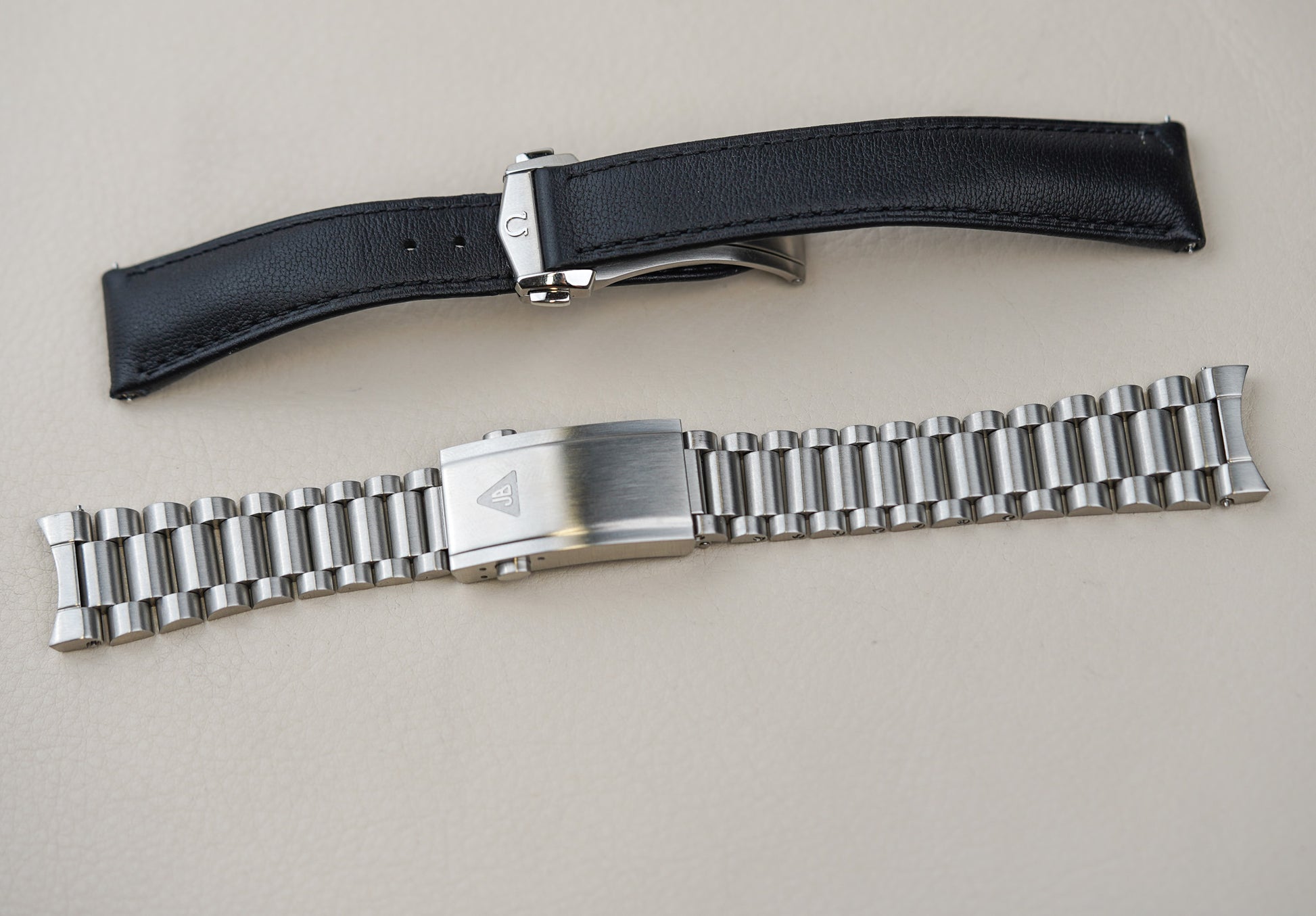 Bracelet: Black Omega Leather Strap and a JB Stainless Steel Bracelet